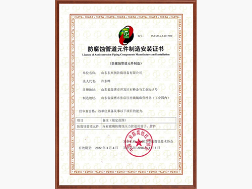山東東興揚(淄博五環(huán))防腐設備有限公司是專業(yè)的鋼襯玻璃廠家,鋼襯玻璃,鋼襯玻璃管道等產品使用壽命長,造價低,集開發(fā)、設計、生產、經營于一體的專業(yè)性的工業(yè)防腐單位,被評選為中國 工業(yè)防腐蝕技術協會會員企業(yè)單位。